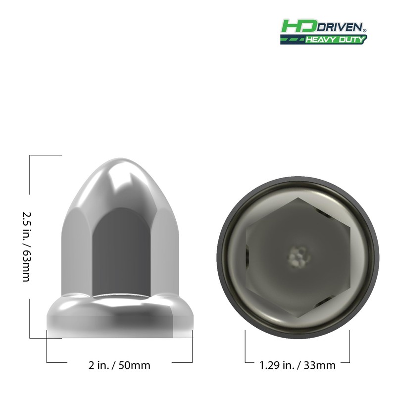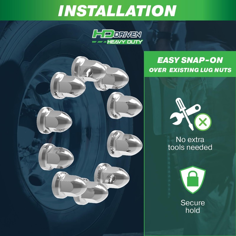 - DESIGNED TO FIT: The chrome nut cover has a 33mm universal fit, designed to fit most standard lug nuts and will add a new style to your semi-truck, big rig, or 18 wheeler. It ensures long lasting protection without compromising on aesthetics.