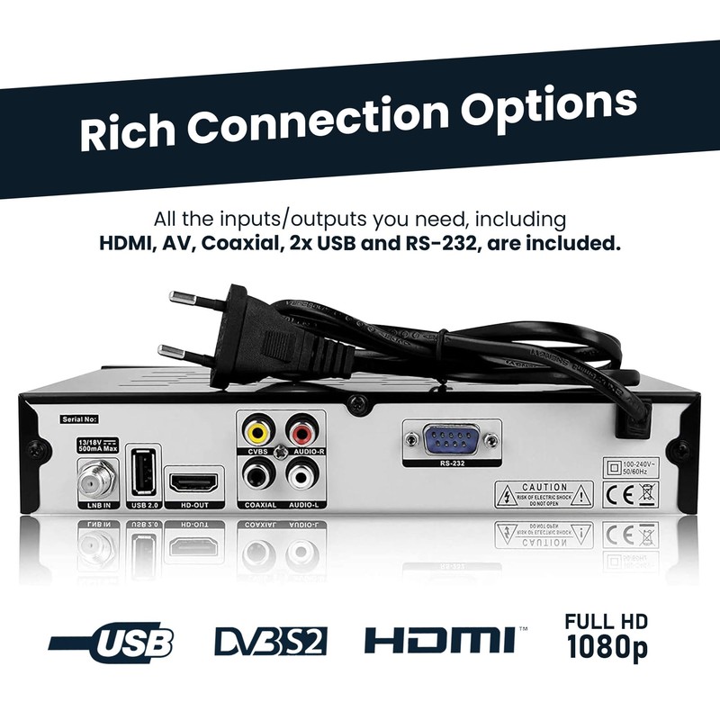 - Bewährte Hohe Qualität: Unser Satellitenreceiver bietet HD- und Full HD 1080P-Auflösung für herausragende Bildqualität. Ausgestattet mit HDTV, DVB-S/DVB-S2, HDMI, AV-Ausgang, digitalem Audioausgang und 2x USB 2.0 sorgt er für ein umfassendes Unterhaltungserlebnis.