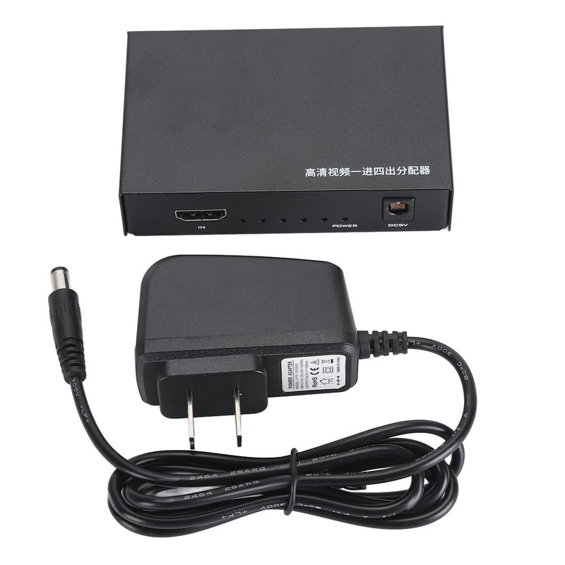 HD Multimedia Interface Splitter 1 in 4 Out 1x4 HD Multimedia Interface Display Duplicate Mirror Full HD 1080P 4K 30Hz 100‑240V