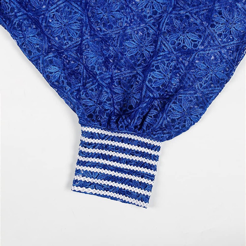 HD RoyalBlue Lace African Bubu Dress Batwing Sleeves V Neck Nigerian Woman Caftan Gown