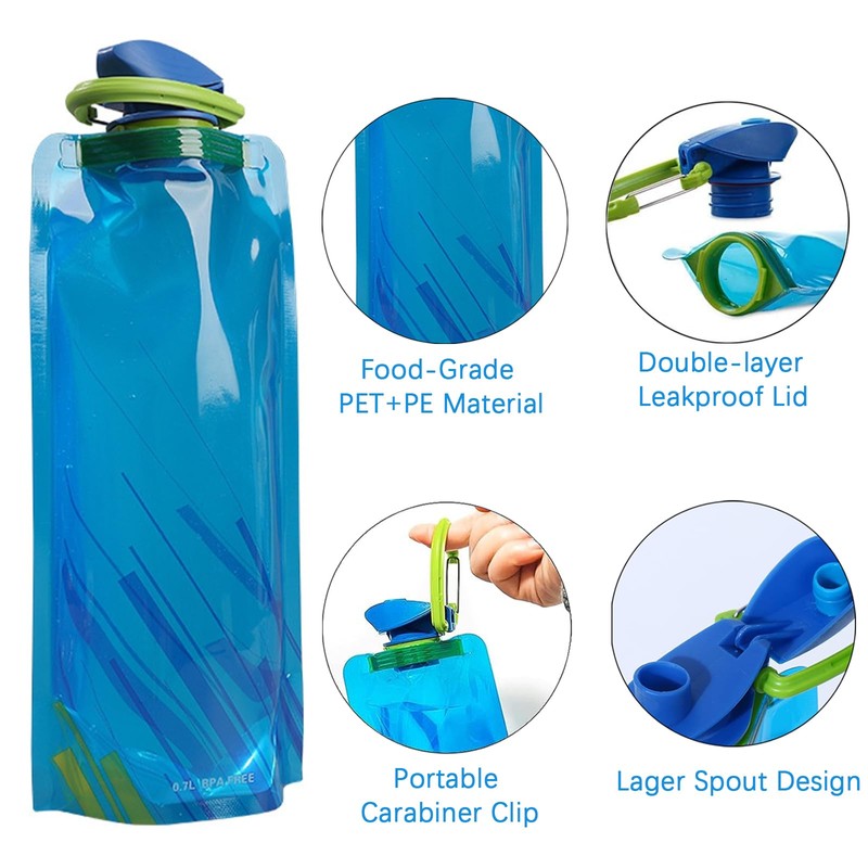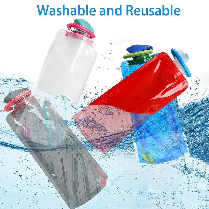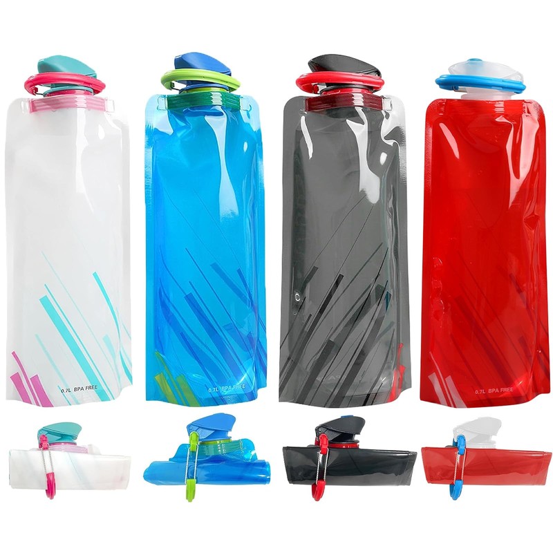 Package Includes: You will receive 4 PCS 700ml collapsible water bottle.(Blue,Black,Red,White)