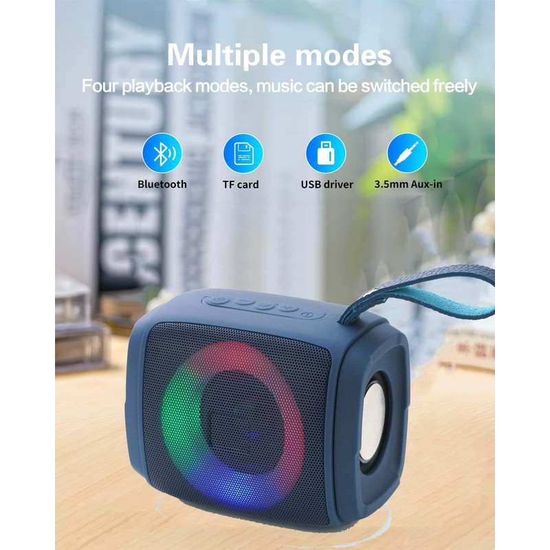 - [One driver and two bass diaphragms]: Bluetooth speaker, compact body, 5W clear sound quality, carefully designed in the middle of the small speaker, two passive bass diaphragms, colorful lights. A great listening experience and ambiance starts with having beautiful speakers.
