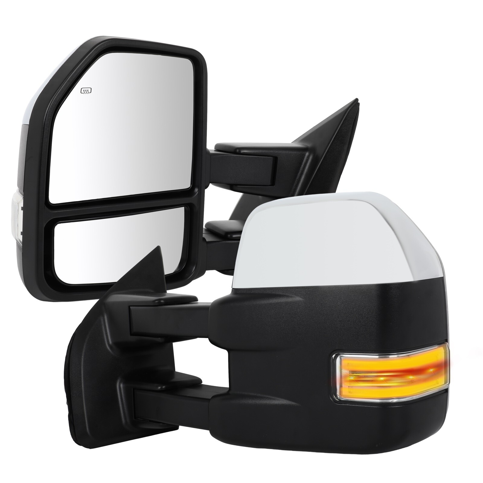 Hdautoworld For 2015-2020 Ford F150 Tow Mirrors Power Heated Turn Signal Puddle Light Chrome
