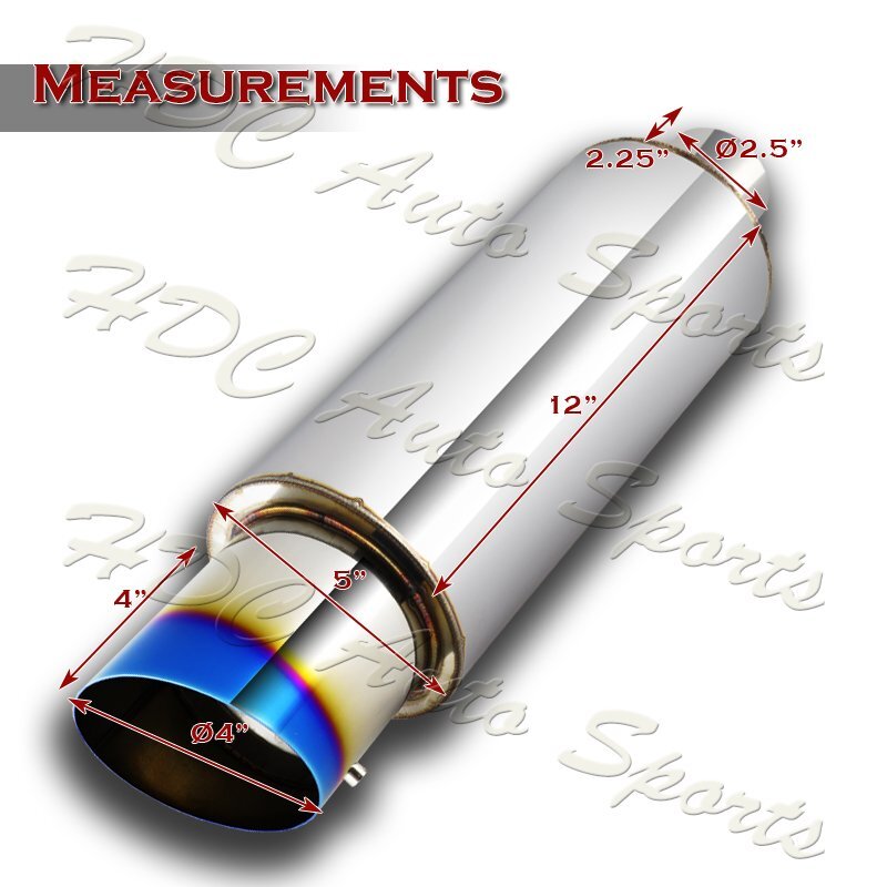 HDC Autosports 4" Titanium Burnt Slant N1 Tip T304 Weld On Exhaust Muffler 2.5" Inlet Universal