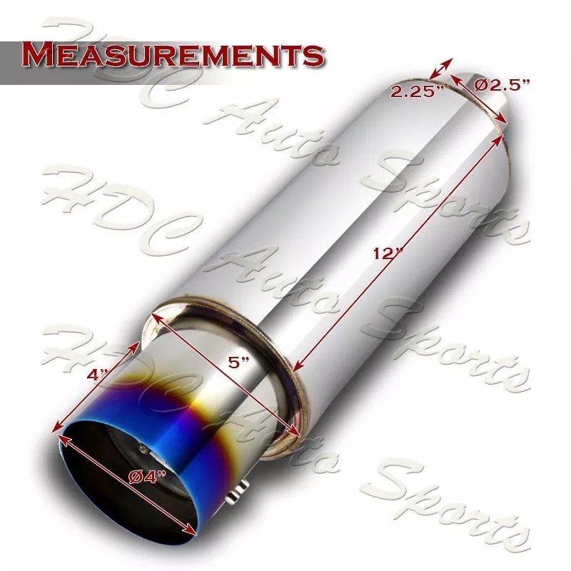 N1 Style 4" Burnt Tip Stainless Weld On Exhaust Muffler 2.5" Inlet Universal