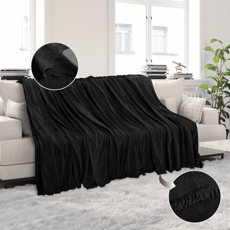 HDCAXKJ Corner Sectional Couch Covers for Dogs L Shape Sofa Cover with Tassel Chenille Soft Non Slip U Shaped Couch Cover Blanket Washable Sofa Slipcovers Protector (Charcoal Black, 91x252 inch)