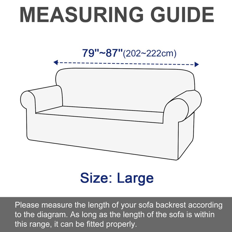 - ABOUT THE SIZE: Please measure the length of the sofa backrest according to the installation guide provided in the picture. The Small size chair covers fit for 32"-40" armchair, the Medium size loveseat covers for 2 cushion couch fit for 60"-72" love seat couch, the Large couch cover fits for 79"-87" couches, the X-Large couch cover fits for 87"-95" extra large couches,the XX-Large couch covers for 3 cushion couch sofa fit for 99"-107" oversized couches