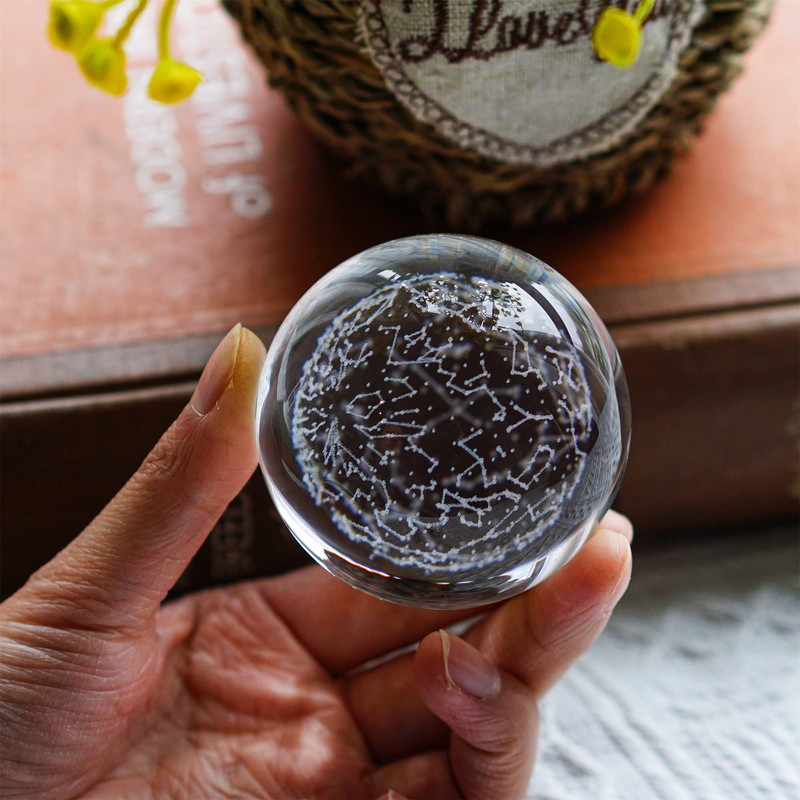 - Grabado láser 3D: este patrón realista está tallado en nuestra bola de vidrio por tecnología avanzada de grabado láser, haciendo que la figura de constelación parezca vívida y realista, la bola de vidrio nunca se desvanecerá y durará para siempre, manteniendo su brillo original durante toda una vida de uso.