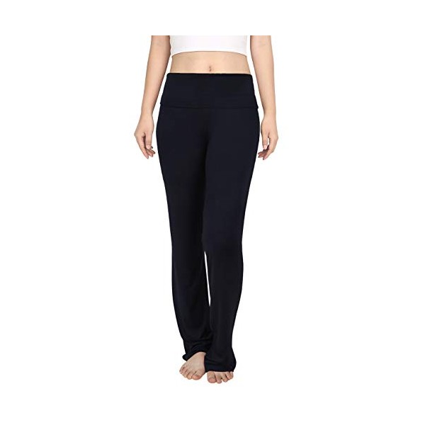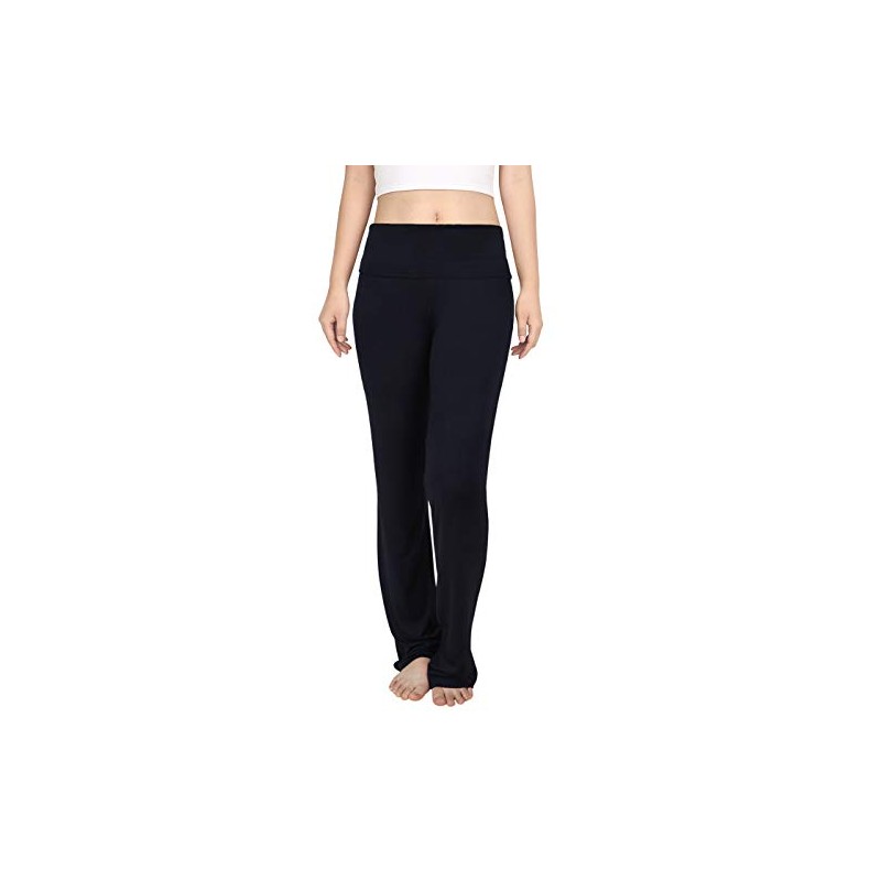 HDE Foldover Athletic Yoga Pants Gym Workout Leggings (Black, Medium)