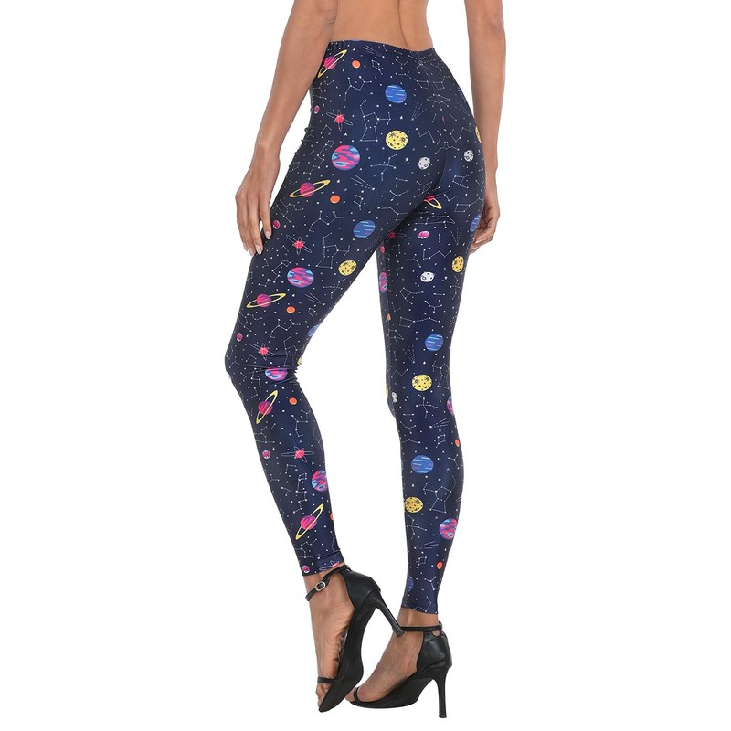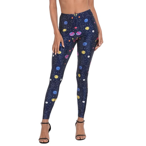 HDE Trendy Design Workout Leggings - Fun Fashion Graphic Printed Cute Patterns Solar System - L
