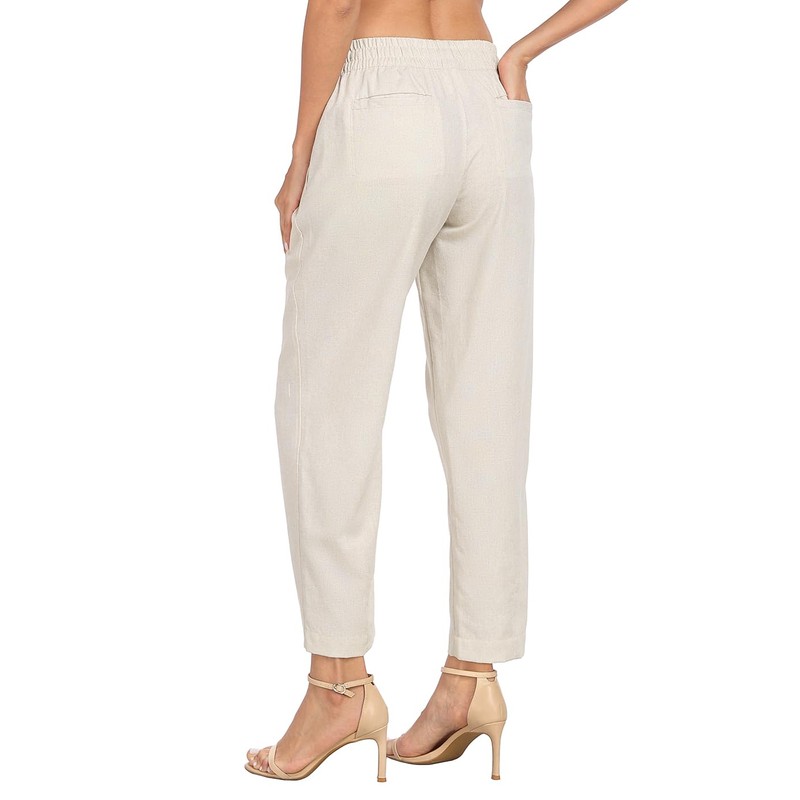 - Lightweight pants made from a breathable 45% Linen, 55% Viscose fabric feature a pull on style waistband with a drawstring that can be tied for a more snug fit and zipper pockets - great for travel, commuting to work or everyday casual wear (white color has polyester liner)