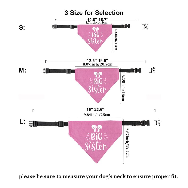 - 【Perfect for Pregnancy Announcement Gift】big sister dog bandana collar, Cute lovely gift for your dog to wear to announce pregnancy or as a photo prop. Gently tie a headscarf on your pet’s neck, watch them walk along the aisle, and take photos to share announcements with friends and family. This is ideal for including puppies on important announcement day’s method.