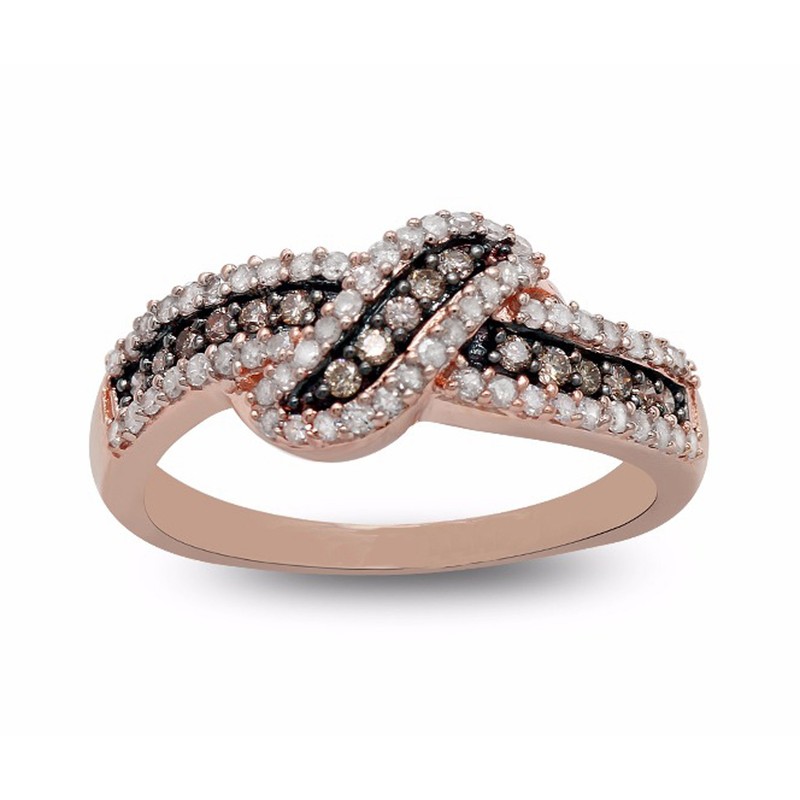Hdiamonds Mother's Day Gift For Her 1/2 Carat Total Weight (cttw) 925 Sterling Silver Diamond Ring with White-Brown Diamonds - 18K Rose Gold Plating, Bridal Rings for Women (Ring Size: 5)