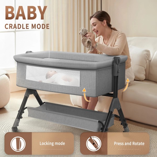 HDJ Baby Bassinet Bedside Crib Infant Sleeper Bed Cradle Newborn with Storage Basket