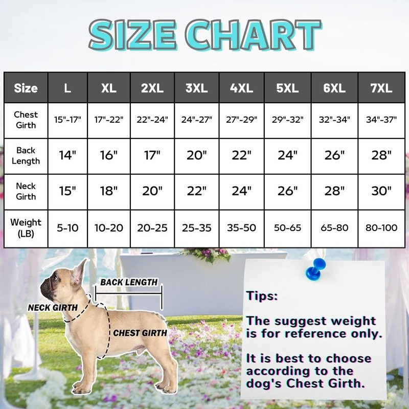 - Size: There are 6 sizes available for L-7XL. Please measure your dog first and then place an order according to the size chart.It only suit for MEDIUM and LARGE dogs.