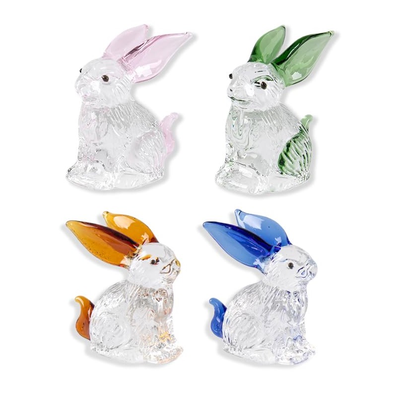 HDLJIAL 4 Pcs Glass Bunny Figurines,Crystal Easter Bunny Collectibles Spring Easter Rabbit Decor Table Centerpieces