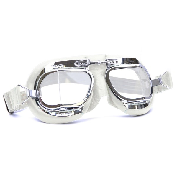 HDM Halcyon MK49 Leather Motorcycle Goggles for Open Face Helmets (White Leather)