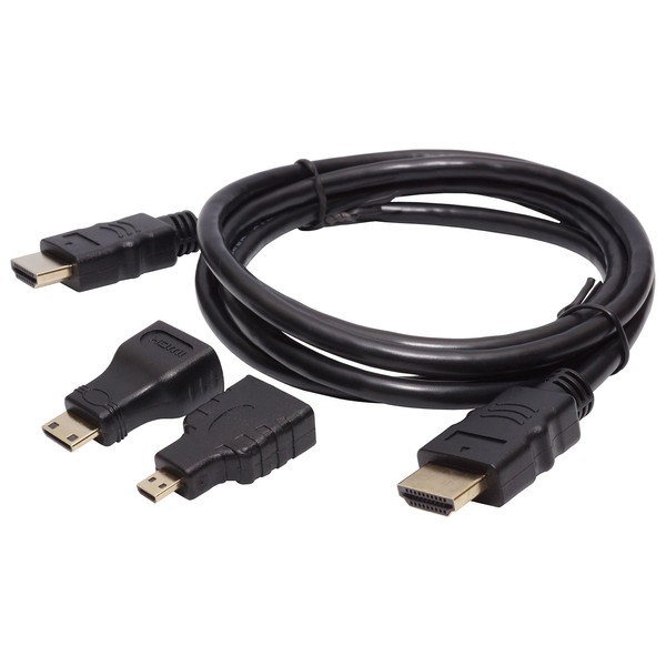 - Set Includes: HDMI cable (Type-A), Mini HDMI adapter, Micro HDMI adapter