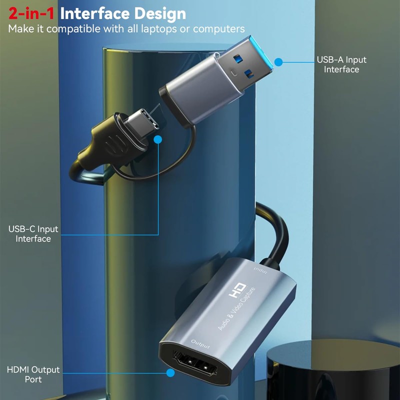 - Perfect Video Capture: Our hdmi usb capture card can capture up to 60FPS 4K@60Hz ultra-clear input video and output it became 1920×1080@60Hz video max, supports 1080P full HD video recording and live streaming without latency. Type-C and USB interface can meet most of the devices in daily life.