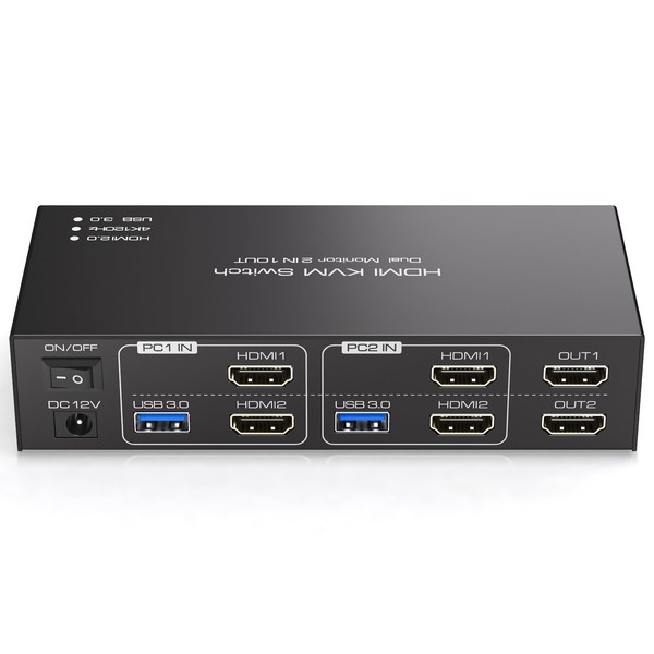 - 【KVM Switch 2 Monitors 2 Computers】KVM switch dual monitors allows you to control two computers sharing two monitors with just one set of keyboard and mouse.USB 3.0 kvm switch 2 ports support extended & copy mode.HDMI 1 and HDMI 2 ports on the kvm switch must be connected to the same computer.(Note:requires 2 HDMI ports for each connected computer and make sure your PC or laptop supports multiple monitors)