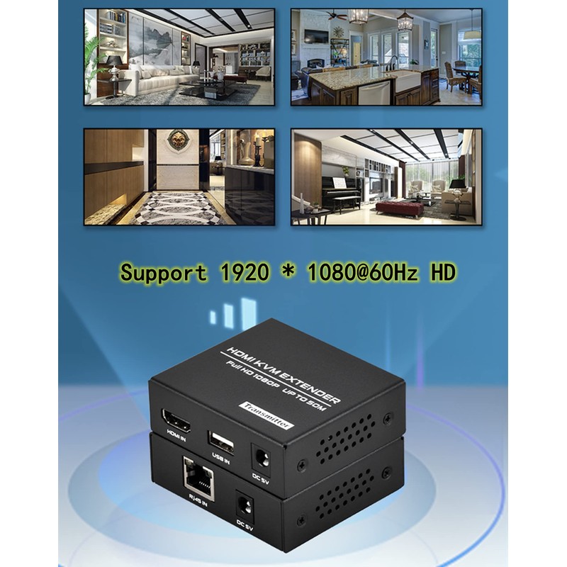 • HDMI KVM 50m Extender - The HDMI KVM Extender can transmits HDMI signal up to 50m/165ft through a Cat5e/6 cable, no video loss with zero delay. Can be widely used in conference, financial securities, data control centers and other fields.