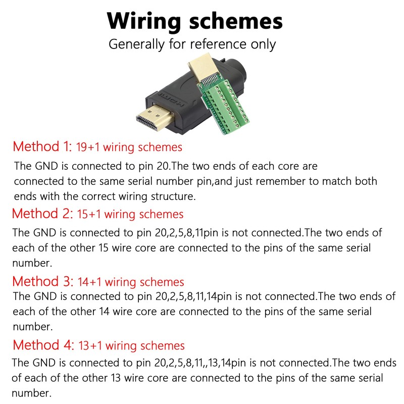 - ✪ Little tips:Due to the different manufacturers,so the most HDMI have varying wiring plans.The actual wiring could be different depending on your equipment.(You can use the multimeter test to connect this HDMI solderless soldering head)If only one end needs to be changed, please apply the same wiring structure that was in use.