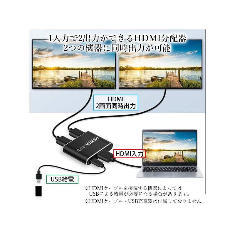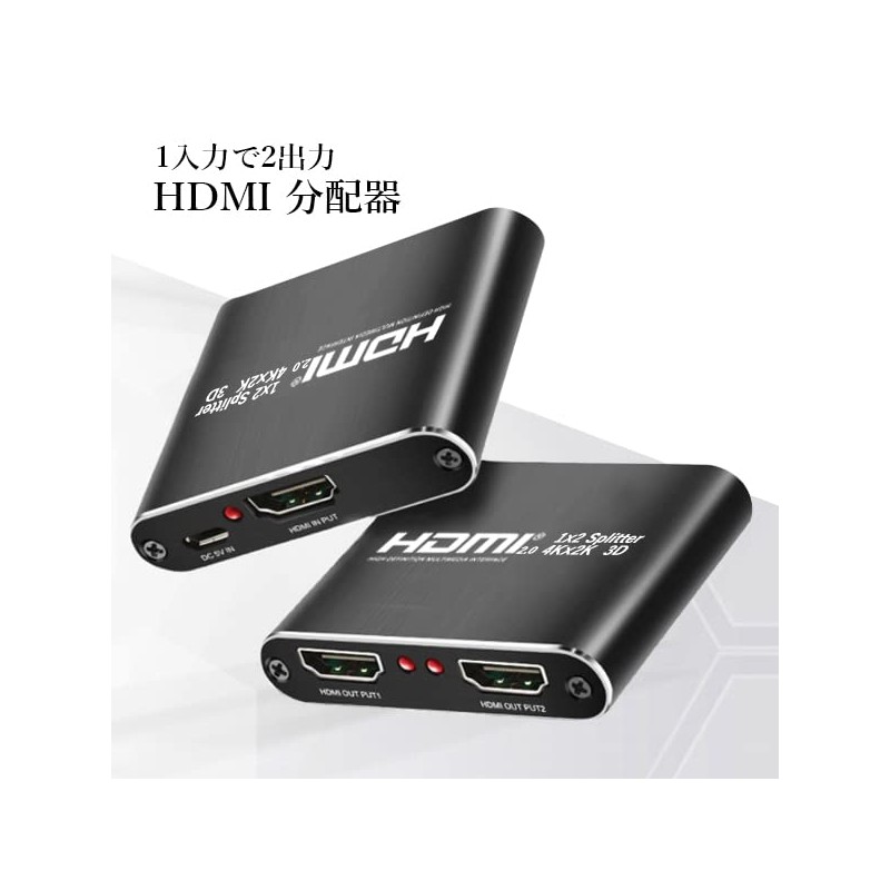 HDMI Splitter, 1 Input, 2 Screens, Simultaneous Output Splitter, Clear, Compact, Lightweight, Aluminum Alloy, Convenient to Carry