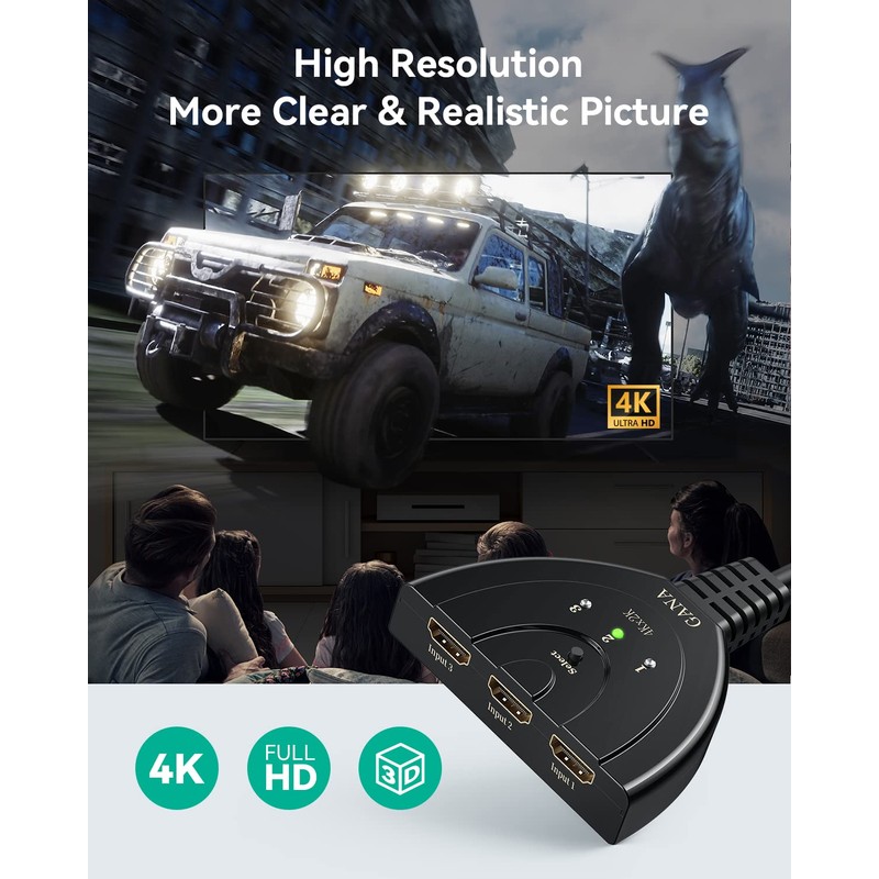 HDMI Switch 4K, GANA Gold Plated 3-Port HDMI Splitter | HDMI Switcher | Supports 4K/Full HD1080p/3D with High Speed Pigtail Cable