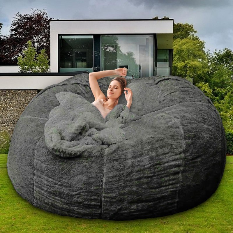HDMLDP Bean Bag Chair for Adults Kids Without Filling Comfy Fluffy Giant Round Beanbag Lazy Sofa Cover for Reading Chair Floor Chair, 6FT, Dark Grey