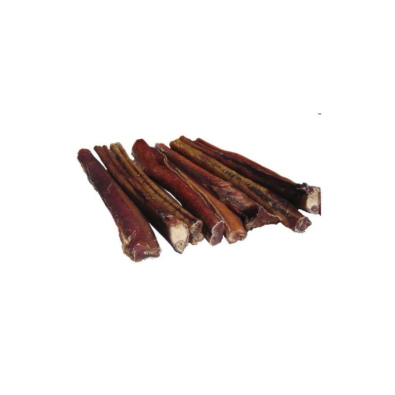 All natural beef is lightly smoked and roasted to perfection to give dogs a unique, flavorful treat. Highly palatable Bull sticks are easy to digest and become chewy when moistened by dog's saliva.Naturally cleans teeth while providing dogs with a satisfying chew.
