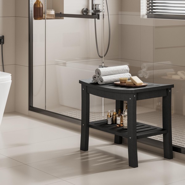 HDPE Shower Bench with Storage Shelf - Waterproof Bath Seat Stool for Bathtub,Spa,Indoor/Outdoor Use - Non-Slip Design