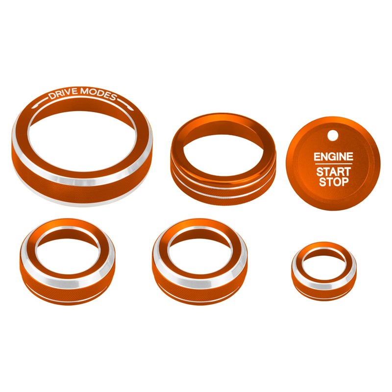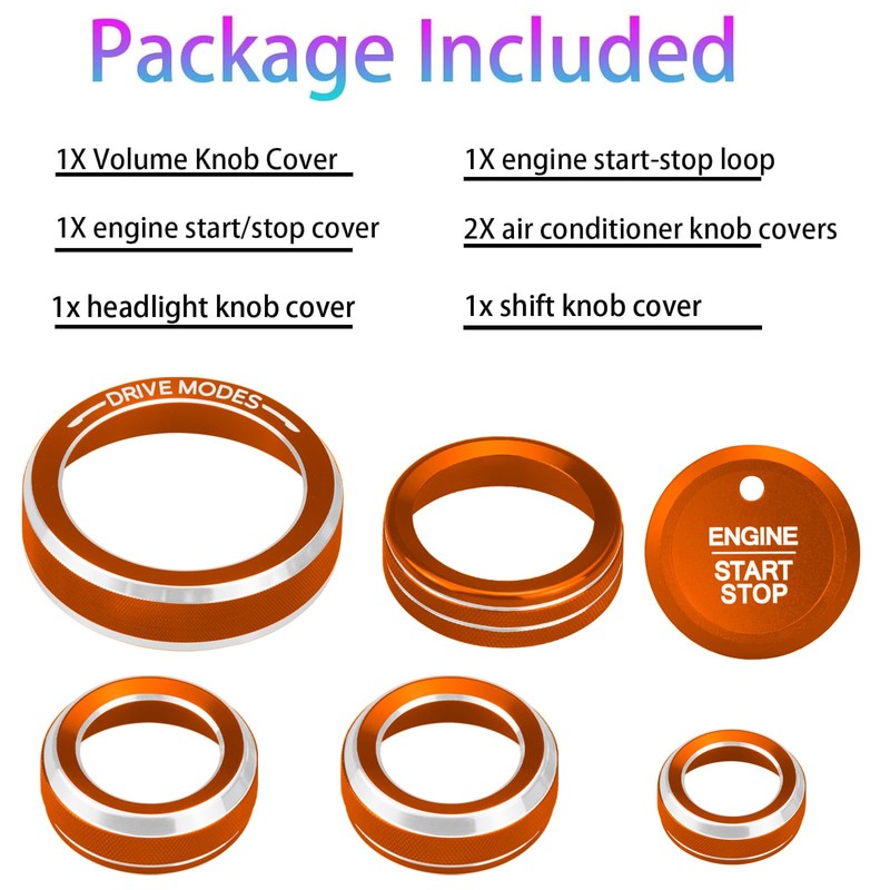 HDUFC for Ford 2024 2025 Ranger, air Conditioning, Volume Control, Push-Button Start, 4WD and Headlight switches, 7 Pieces of Aluminum Alloy knob Cover Decoration (Orange)