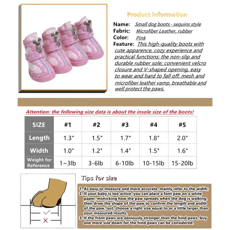 - 【SIZE CHOICE】 #3, insole length: 1.7", insole width: 1.4", recommanded weight: 6-10lb. (weight is only for reference, you'd better measure your baby according to the size chart for perfect fit; it's only for small dogs or cats; be free to contact us if have any questions about the size!)