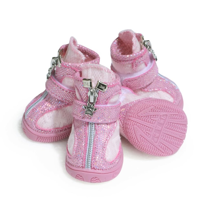 - 【DESIGN】 these premium dog shoes boast a cute candy-pink hue and dazzling sequin details for ultimate style; breathable mesh vamp, not stuffy feet in hot weather; closured by Hook and Loop, V-shaped opening, easy to wear and freely adjust the tightness; non-slip design rubber sole, high temperature resistance.