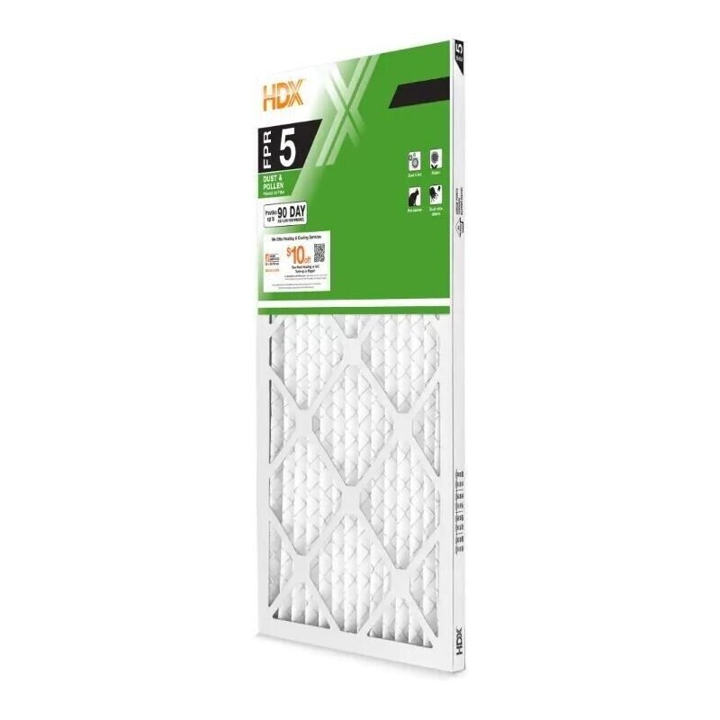 HDX filters are constructed of a durable, moisture-resistant frame with wire supported media for strength and rigidity. The wire-backed Pleated media offers a large surface area which increases the filter's dust-holding capacity and improves its efficiency. The air filter media can be charged electrostatically which means it attracts, captures and traps particles that would otherwise bypass the filter. The air filter's media is rated between a MERV 8 and 13, which is one component of the FPR Rating. FPR or the Filter Performance Rating, is composed of 4-measurements for classifying air filters. Every rating includes 4-elements: MERV rating, E1 efficiency, pressure drop and dust holding capacity. MERV stands for the Minimum Efficiency Reporting Value and measures how well a filter traps particles. The higher the rating, the few particles getting through. E1 efficiency explains how well it traps the smallest particles. Pressure drop measures how much energy the HVAC unit will use to force air through the filter. Dust holding capacity describes how much dust a filter will hold in its lifespan. HDX filters are easy to replace making change-outs quick and keeping indoor air quality at its optimal level while protecting your HVAC unit and allowing it to perform efficiently.