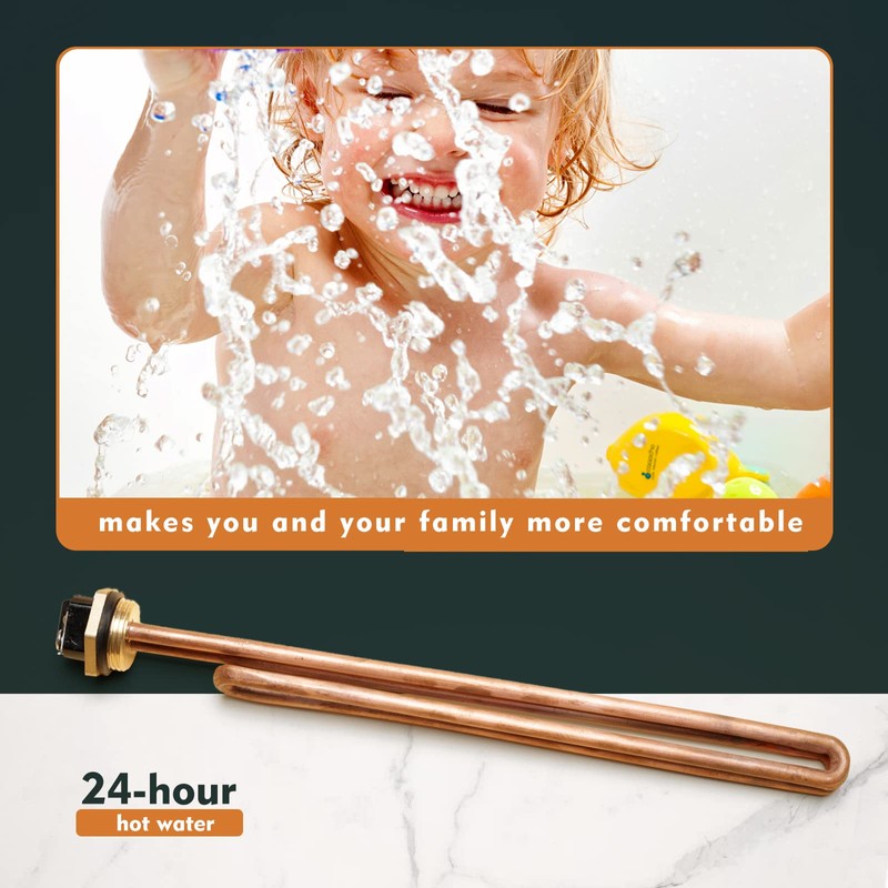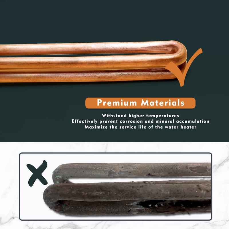 • High Durability: This water heater element is constructed from copper tubing with anti-oxidation coating for good toughness, excellent thermal conductivity, efficient heat transfer, and non-corrosive property. Designed for long-lasting performance and stable quality, the heating element is perfect to extend the life of your water heater as replacement for Eco heating element, offering you considerable savings.