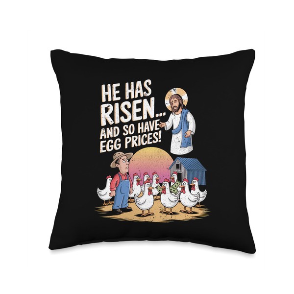 He Has Risen and So Have Egg Prices Funny Easter Egg Throw Pillow