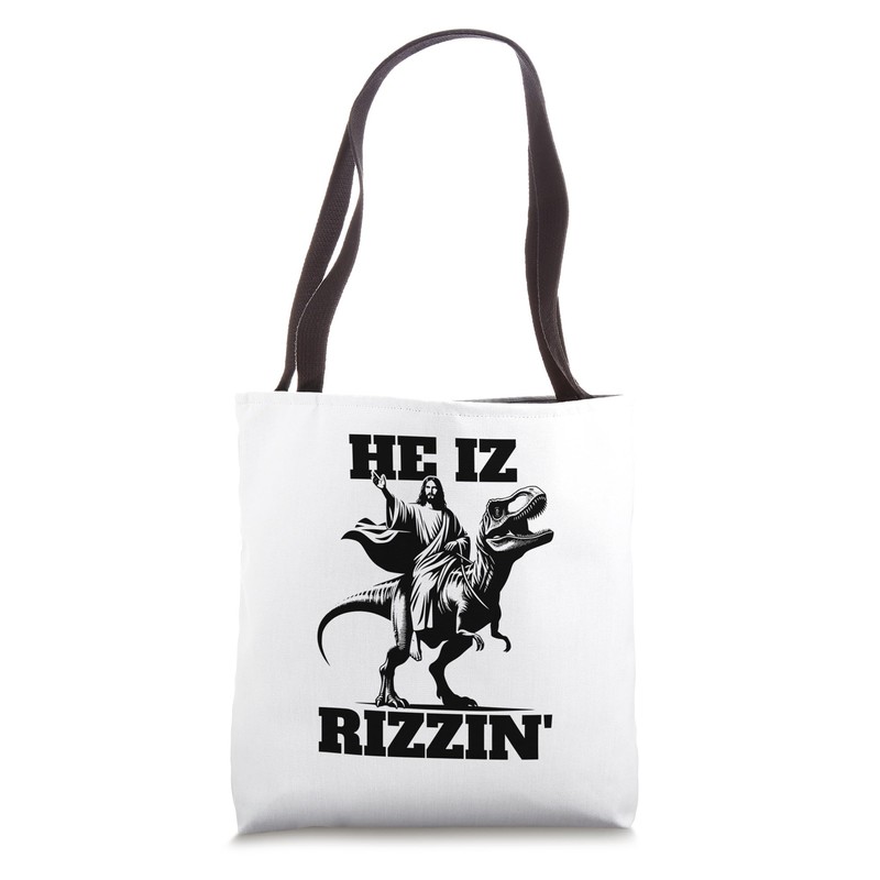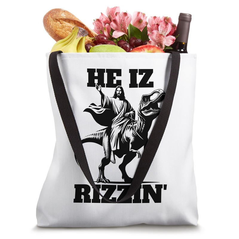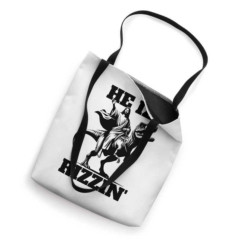 He Iz Rizzin Jesus Riding A T-Rex He Is Risen Jesus Easter Tote Bag