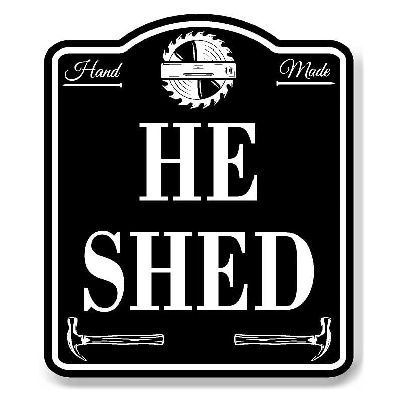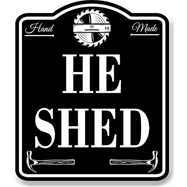 He Shed Workshop Hand Made BLACK Aluminum Composite Sign, 8.5"x10"