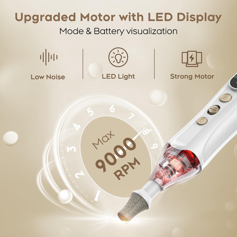 - Rechargeable & Cordless: Cordless nail drill, built-in rechargeable 2000 mAh lithium-ion battery, TYPE-C charging. Our electric nail buffer also supports corded operation when the power runs out, good for traveling