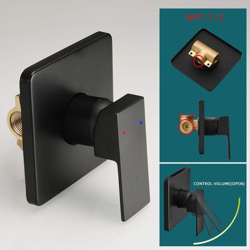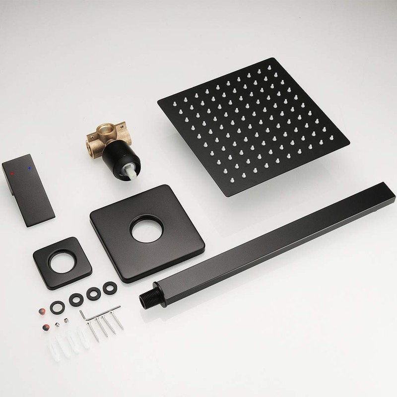Heable Matte Black Shower Faucet Set, Single Function Shower Trim Kit with Rough-in Valve, Square Rain Shower Head System Included Extra Long Shower Arm for Bathroom