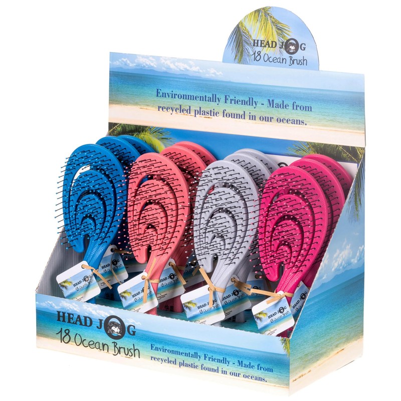 - ECO FRIENDLY HAIRBRUSH: The Head Jog 18 Ocean Brushes are environmentally friendly brushes made from recycled plastic found in our oceans. As well as being friendly to the environment, the detangler hair brush is also friendly to the hair, as the paddle brush gently detangles and massages the scalp.