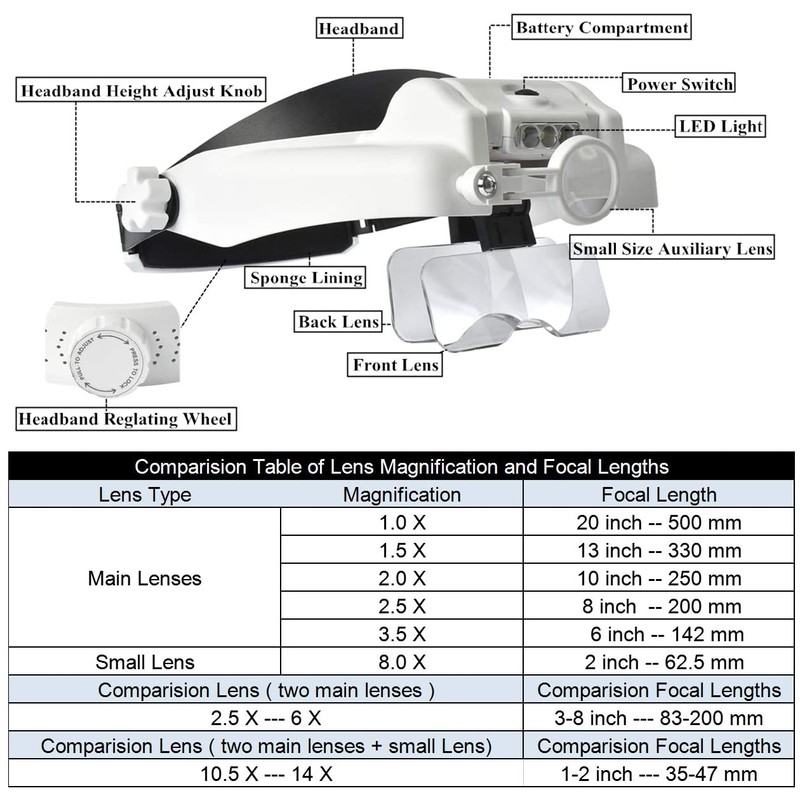 - 【Various Usage】- Improve your low vision and release your hands in work at one time. So many magnifications available for different use: reading,painting,observing,modelling,repairing,sewing,soldering,jewelry making and other hobbies/crafts.