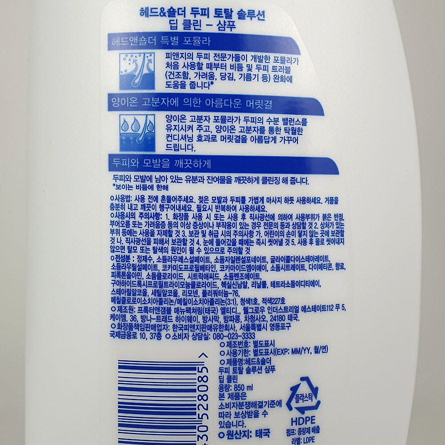 Head & Shoulders Deep Clean Shampoo 850ml / 헤드앤숄더 딥클린 샴푸 850ml