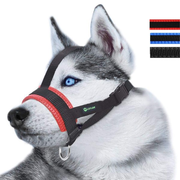 Lepark Head Strap Dog Muzzle Prevent from Taking Off by Paws for Small,Medium and Large Dogs(XL/Red)