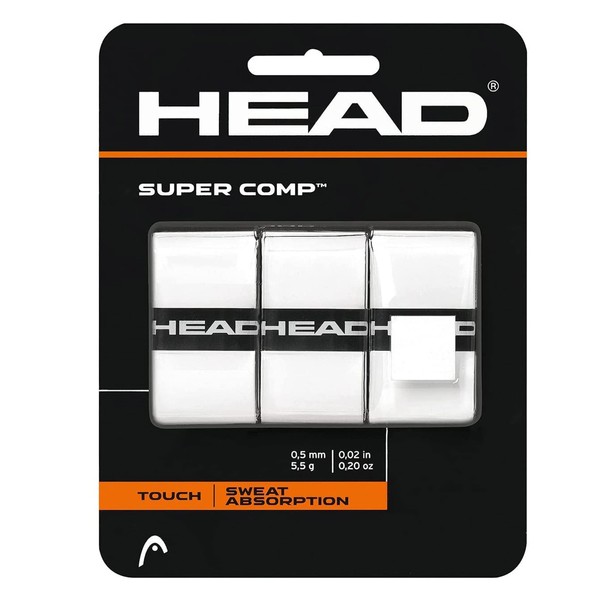 HEAD Unisex HEAD Super Comp Racquet Overgrip Tennis Racket Grip Tape 3 Pack White, White, One Size UK