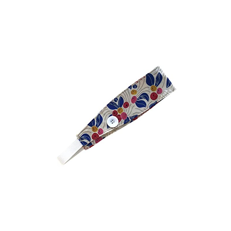 Headband with Buttons for Masks or without Buttons - Organic Cotton Ear Saver - Tan with Floral Design