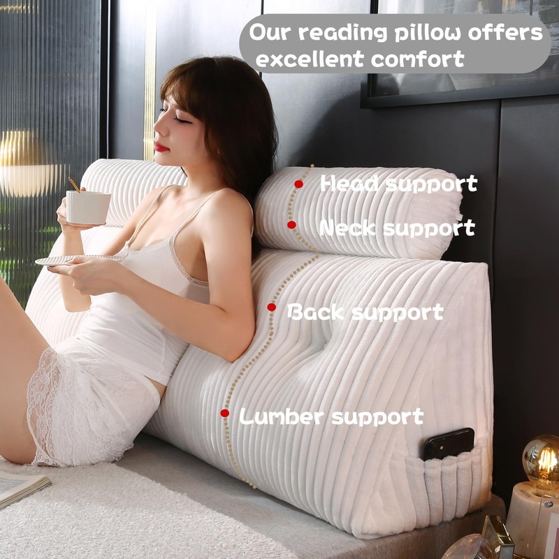 - Ultimate Comfort Pillow. This triangular bolster pillow is perfect for leisurely days in bed, offering the right mix of support, comfort, and durability. Whether you use it to prop up your back or elevate your legs, it enhances the experience of late-night TV watching and reading. An ideal pillow for those who spend extended periods in bed, it ensures a cozy and supportive resting experience.