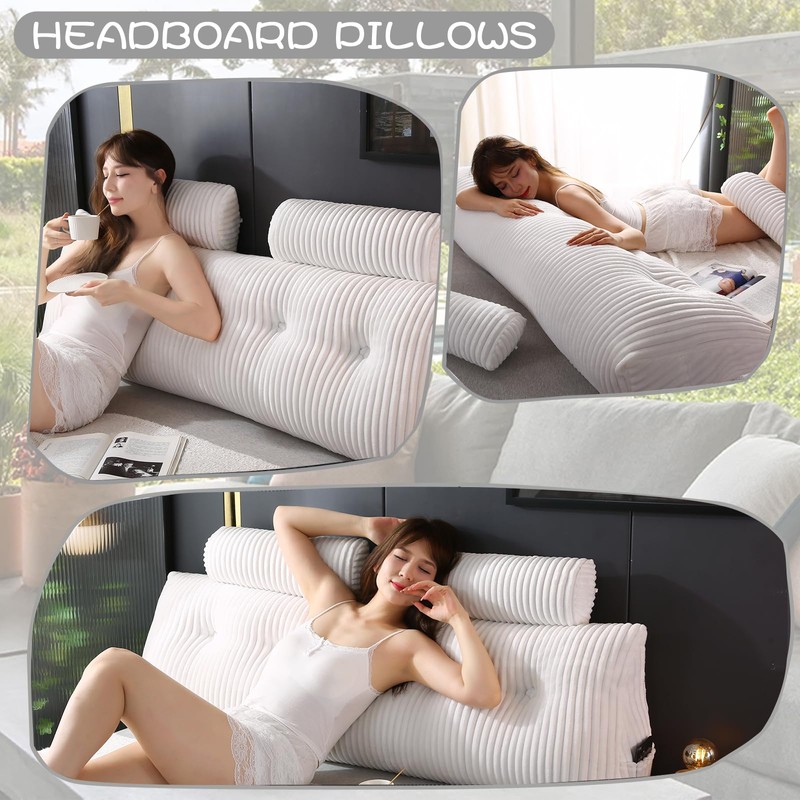 Headboard Wedge Pillow with 2 Pack Neck Roll Pillows Large Wedge Headboard Pillow Reading Pillow Soft and Supportive with Removable Cover