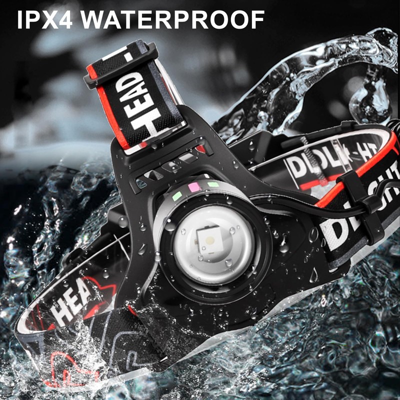 - IPX4 Waterproof Headlight: The waterproof headlamp is made of high quality aviation aluminium housing, the rechargeable headlamp is IPX4 waterproof, which can withstand rain, snow, high temperature and other harsh weather.